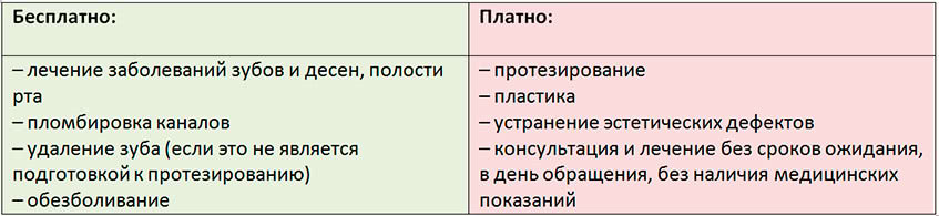 Практически все стоматологии, оказывающие бесплатное лечение, предлагают разные платные услуги, при которых используются более качественные инструменты и материалы. Платная помощь должна оказываться в отдельных кабинетах и вне очереди, где сидят люди, получающие услуги без оплаты.
