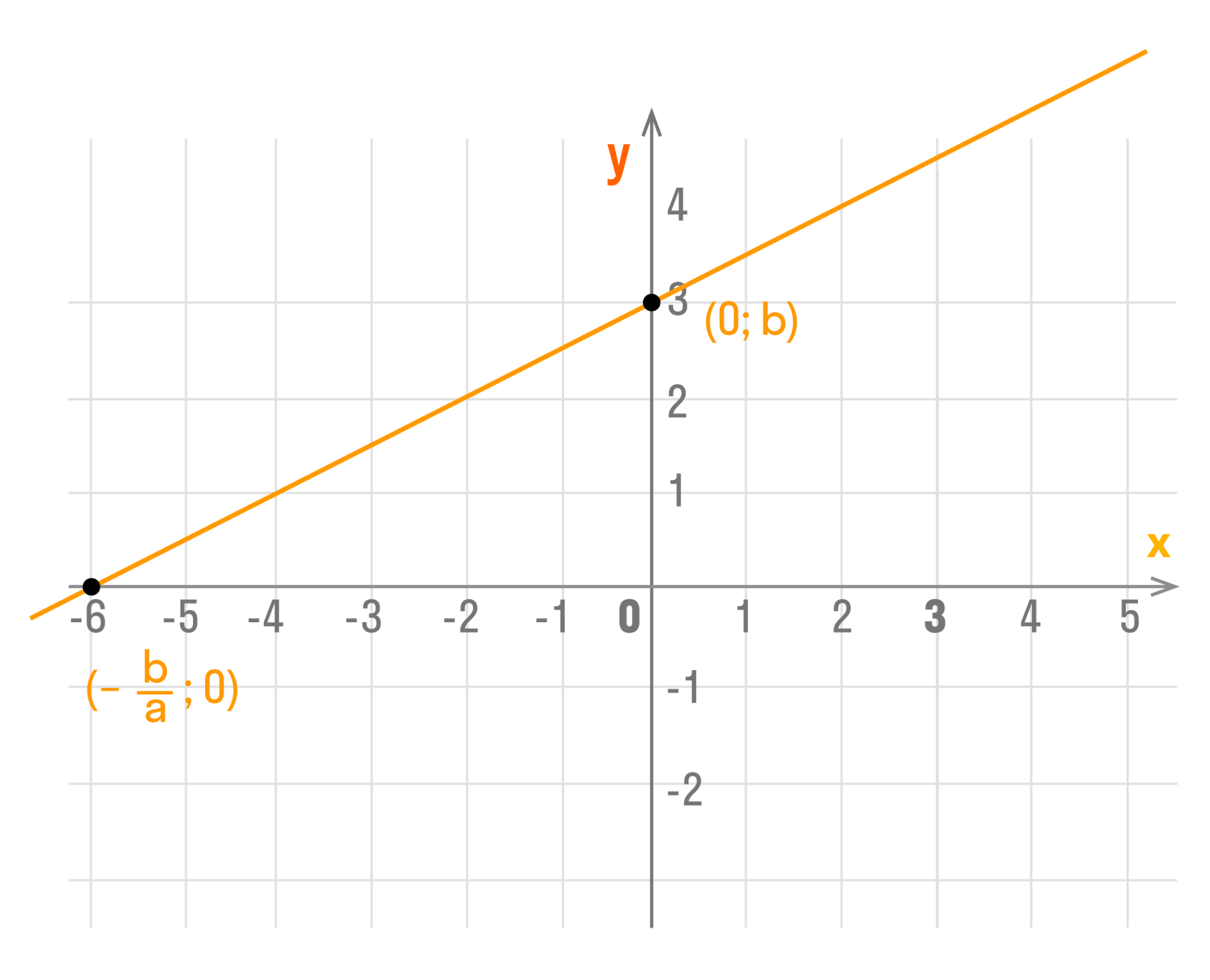 Точки пересечения графика функции y = kx + b с осями координат:
