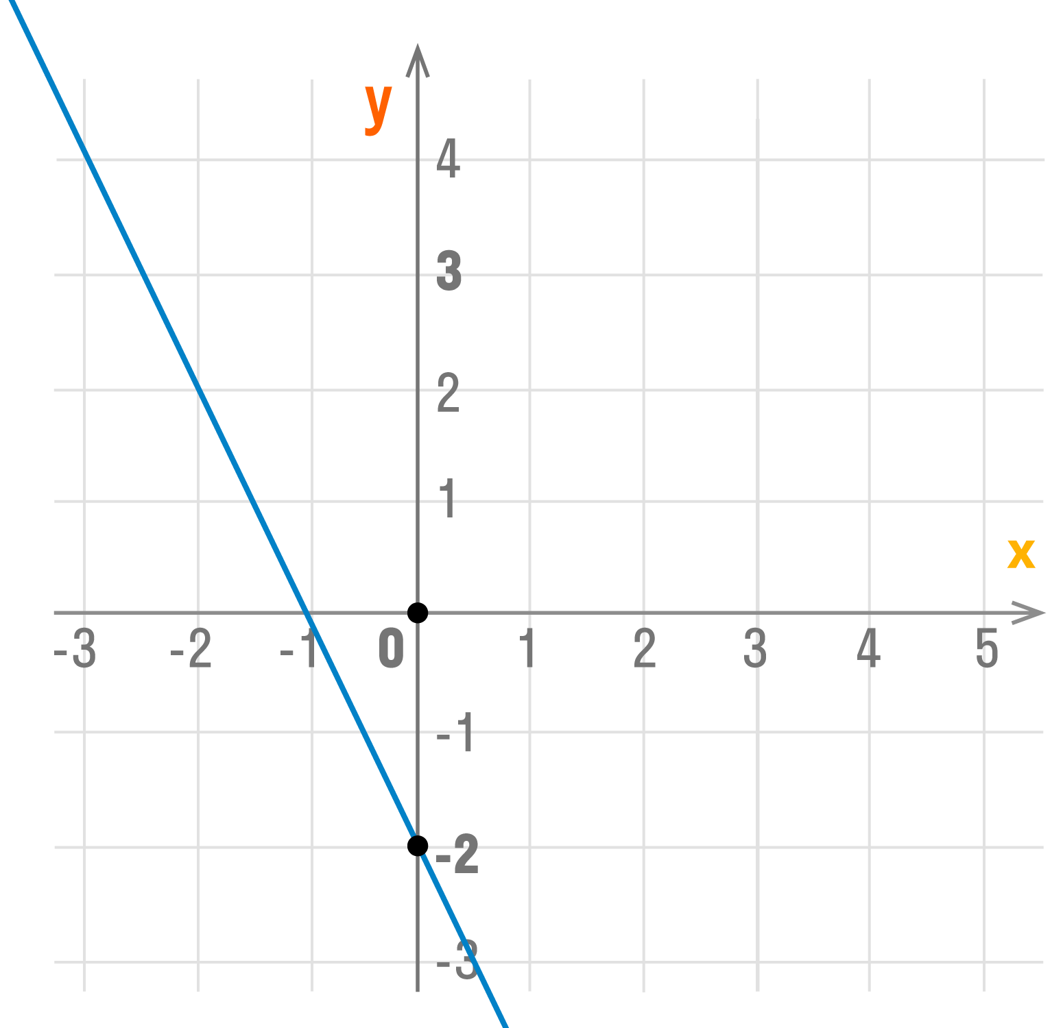 - график функции y = 2x — 2 (b = -2) пересекает ось OY в точке (0; -2).