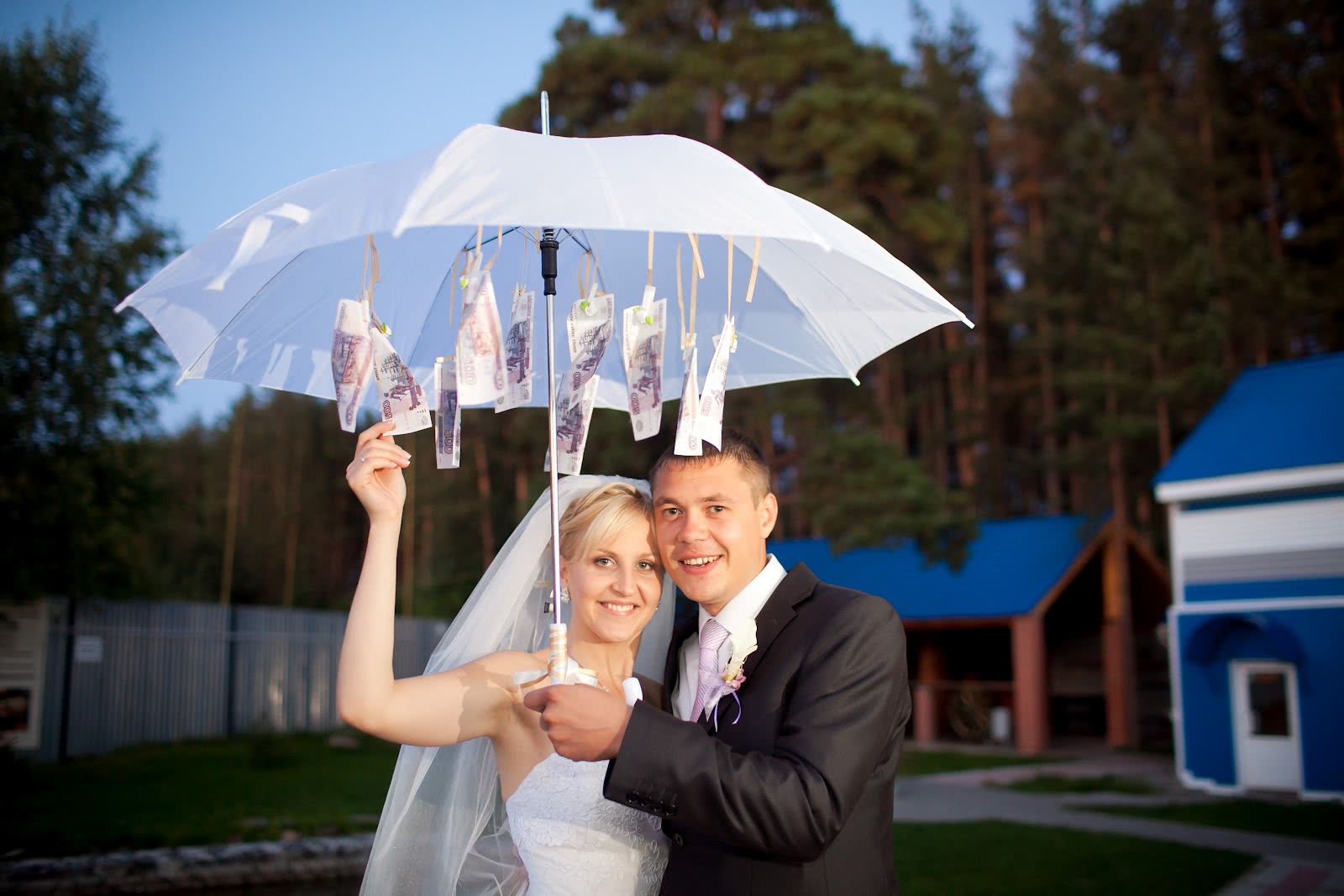 Как поется в известной популярной песне – «Главней всего – погода в доме!». Такое поздравление можно адресовать молодым на свадьбу с вручением денег в зонте, а как это сделать прикольно и весело, расскажем подробно далее. Для вручения такого подарка нужно купить зонт.