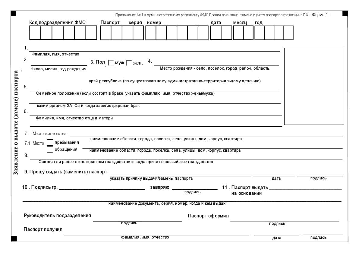 - Заявление на замену паспорта (образец заявления также будет доступен на стенде, либо выдадут готовый бланк в котором вам лишь потребуется вписать собственные данные)