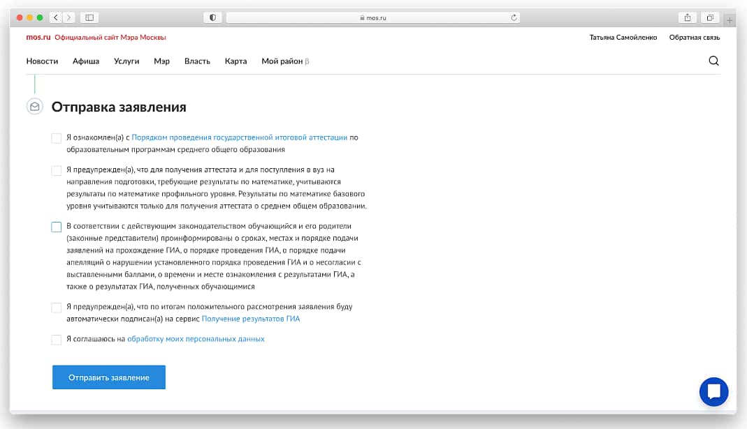 Проверьте, правильно ли указаны данные, и отправьте заявление.