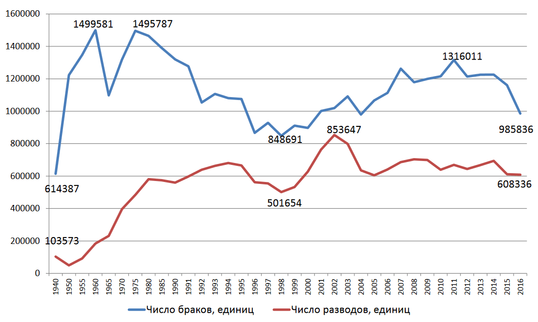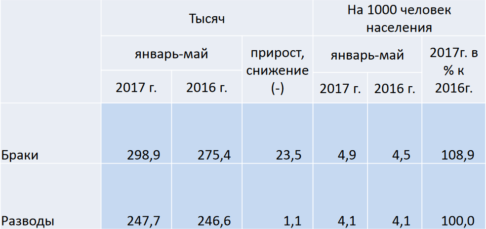 Статистика браков и разводов в России по годам таблица