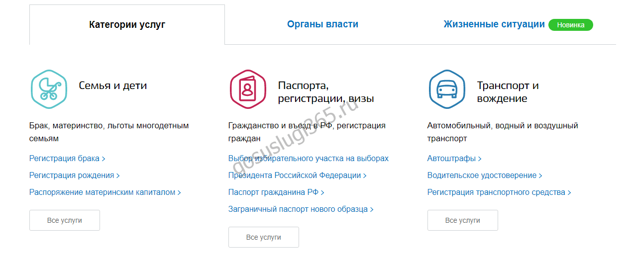 Видим перечень разделов, где предлагаются услуги. «Семья и дети» — то, что нужно.