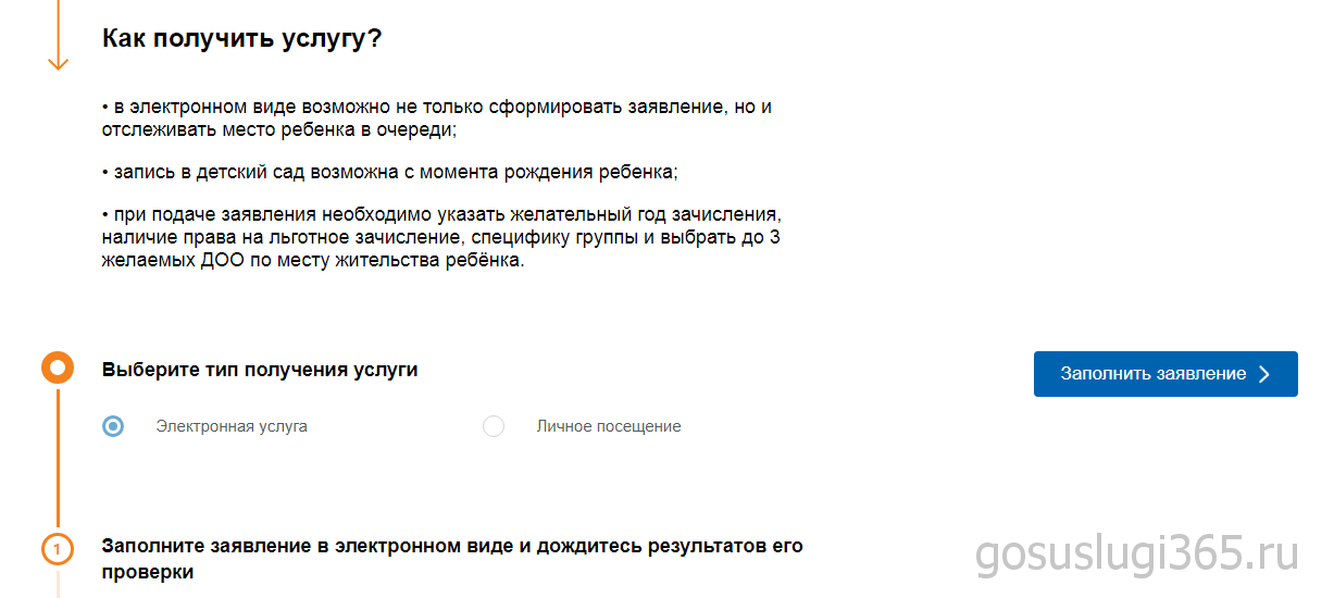 Прежде чем приступить к заполнению формы, прочтите информацию на странице. Занять место в очереди родители могут сразу после выписки из роддома. Главное, чтобы у новорожденного уже были необходимые документы. Регистрация обращения происходит в тот же день, услуга бесплатна для семей.